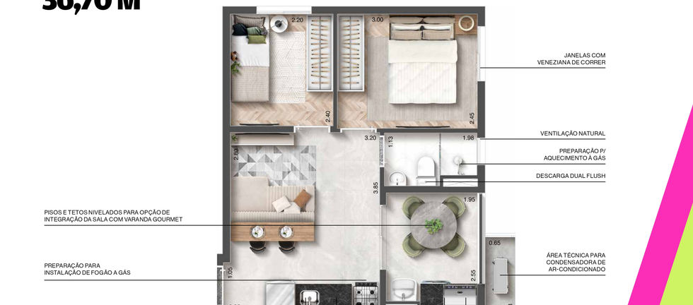 20 unidades de 2 dormitórios com 36,70 m² e vaga